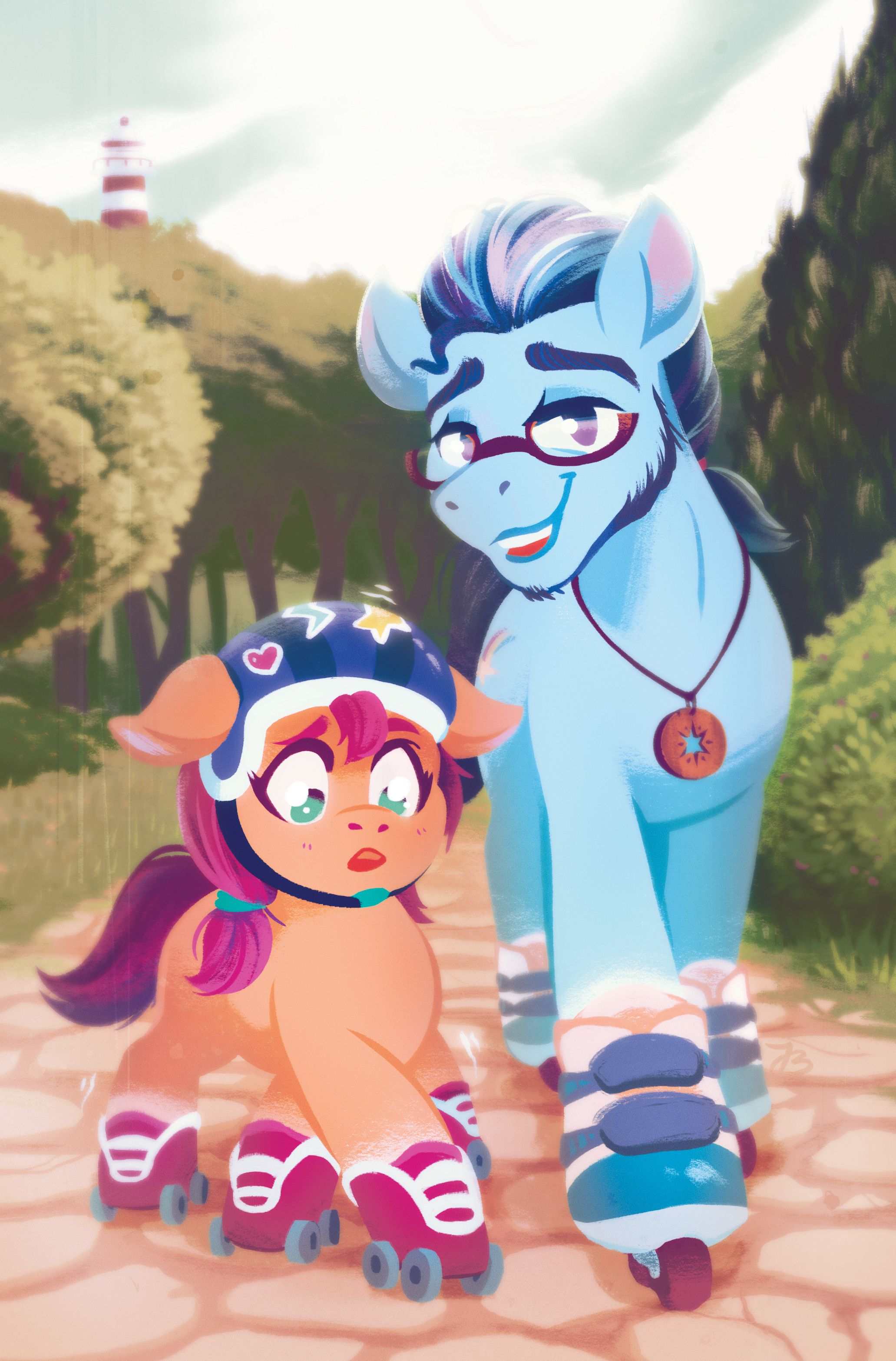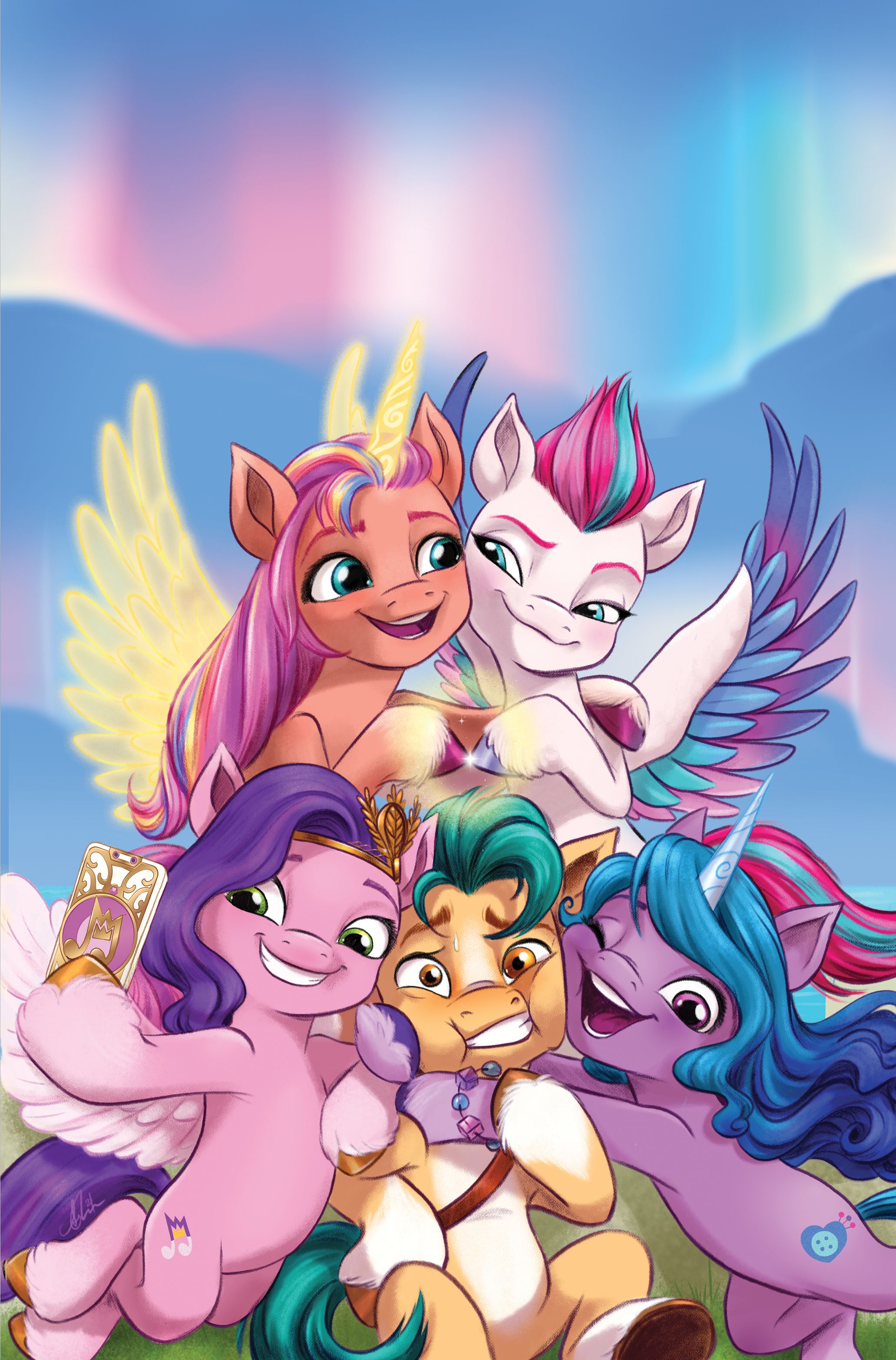 Written by Celeste Bronfman and illustrated by Amy Mebberson, My Little Pony features Sunny Starscout, Izzy Moonbow, Zipp Storm, Pipp Petals, Hitch Trailblazer, aka the Mane 5, as well as their sidekick Cloudpuff "as they explore a brand-new Equestria following the magical events of the hit movie! With magic returned to Equestria, the ponies are more united than ever—at least until one of the Unity Crystals is stolen! Can the Mane 5 find the culprit before magic is gone for good? And could it really be that their pet Pomeranian is leading them to the city of Canterlot of Friendship Is Magic fame?"
